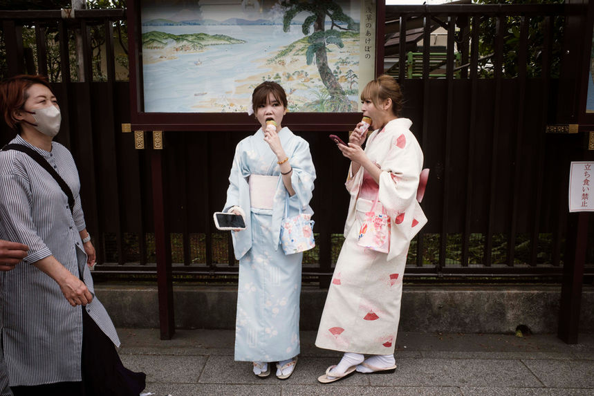 Di giorno, è silenzioso. Lo respiri profondamente nelle sue vie fragranti ricche di Sakura, che solo nella loro esplosione riescono ad incantarti e donarti una pace unica. È vivace, non si ferma mai, ma lo fa in silenzio, con rispetto, quasi come se non volesse disturbare l'equilibrio che è stato creato e perpetuato, generazione dopo generazione.